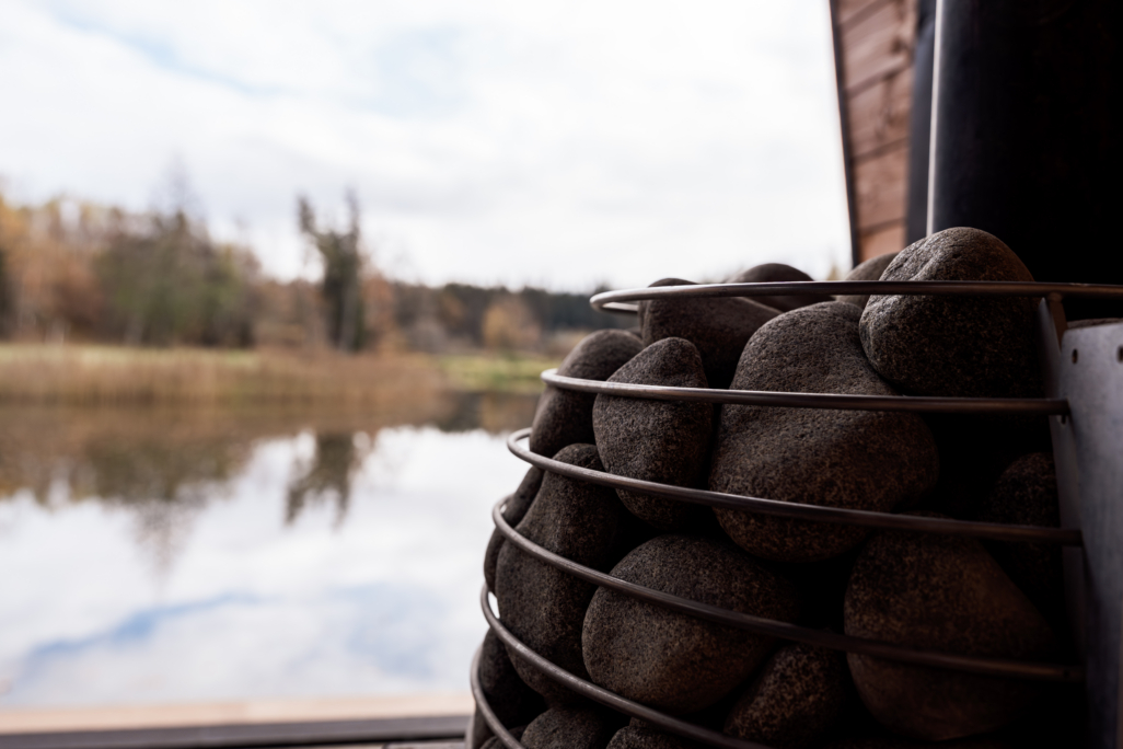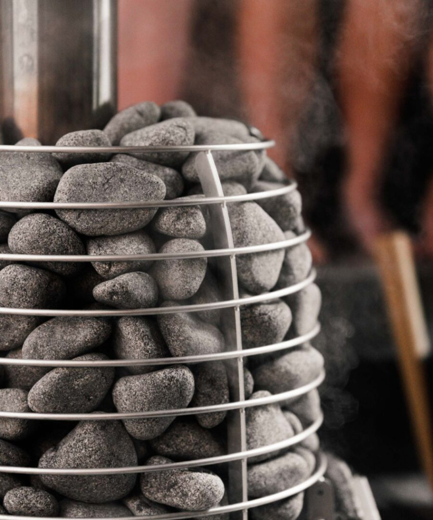 - Der HIVE Wood 17 benötigt 135 kg an Saunasteinen mit einem Durchmesser von 5 – 10 cm