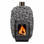 Der Ofen ist gut konstruiert, um eine effiziente Verbrennung und eine kräftige Flamme zu gewährleisten. Die Brennkammer ist aus Stahl gefertigt und hält höchsten Temperaturen stand. Zusätzlich kann ein Wärmetauscher unter den Saunasteinen angebracht werden, um Wasser zu erhitzen, während das Holz brennt.